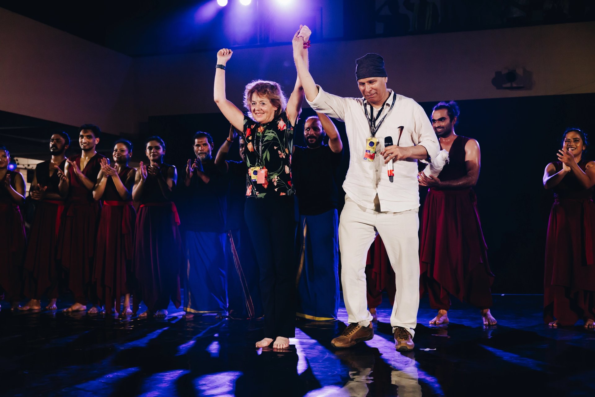 t's incredible to see the silks being choreographed from the basis of Kalarippayattu. So, a kind of movement that I've never seen before in my career. So a real privilege to work with these incredible dancers and it's been um fantastic to see the development of Attakkalari over the last 30 years. I remember being at the very early stages of it with Jay’s vision to use Kalarippayattu in a contemporary movement piece and Sonnet of Samsara most definitely does that. It's an honour to be part of the team."
